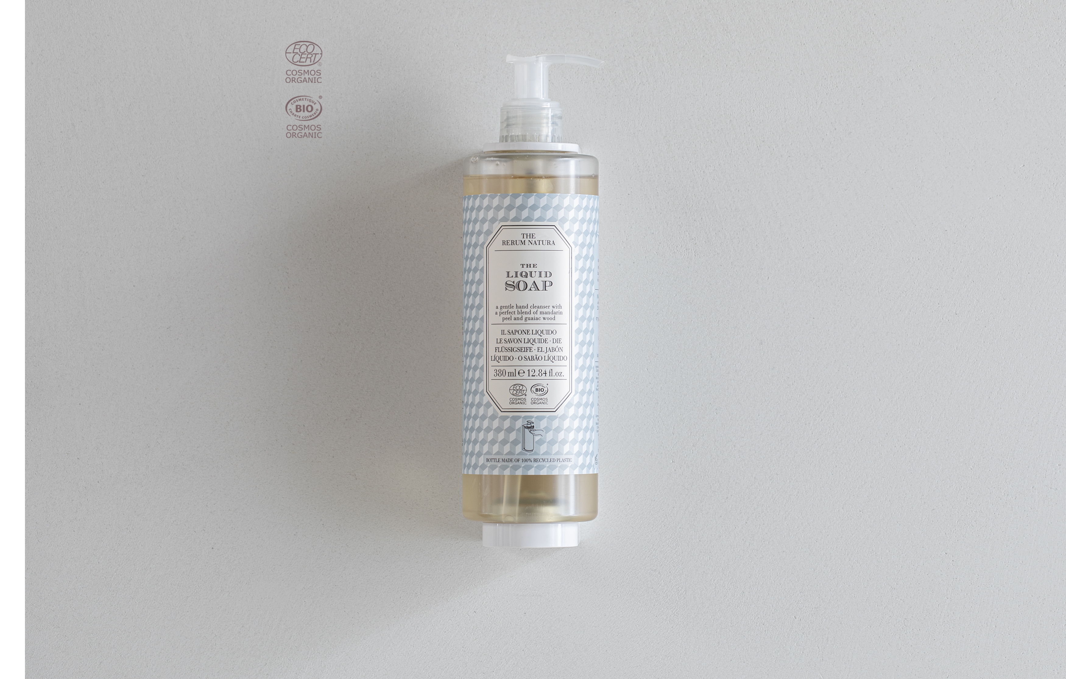 Jabón de manos delicado con una mezcla perfecta de cáscara de mandarina y madera de guayaco, certificado Cosmos Organic* por Ecocert, que mejora la higiene diaria.